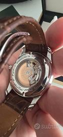 Vendo bellissimo Frederique Constant automatico Moonphase Heartbeat ref FC-330/335X6B4/6 movimento SW200-1, riserva di carica 38h, 26 rubini, 43 mm la cassa, cinturino in pelle, corona logata, taglio della massa oscillante a Côte de Geneve. Completo di tutto, scatola, libretto, certificato di autenticità. Tutto in perfetto stato come da foto. Prezzo di listino 2400€. Vendo per nuovo progetto a 980€