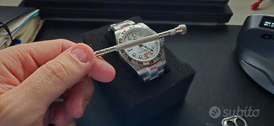 Meccanismo automatico di blocco del tempo quando la vite con corona viene estratta dal suo alloggiamento