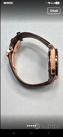 Materiali:Cassa in acciaio inossidabile con finitura PVD oro rosa da circa 44-45 mm e cinturino in pelle marrone.