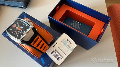 orologio automatico Locman New Tremila da uomo con cassa in acciaio e titanio, quadrante nero e cinturino in silicone arancione