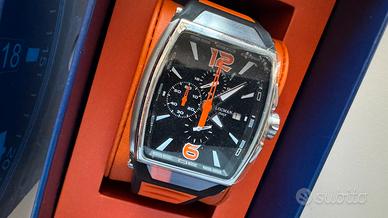 orologio automatico Locman New Tremila da uomo con cassa in acciaio e titanio, quadrante nero e cinturino in silicone arancione