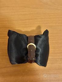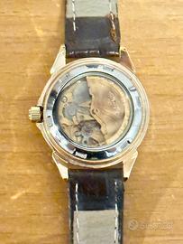 Vendo orologio automatico di piccole dimensioni con cinturino marrone in pelle e cuscinetto.