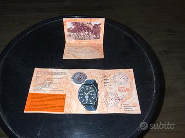 Orologio tenuto in buone condizioni, acquistato negli anni ‘90, unico nel suo dial design personalizzato in fibra di carbonio e logo 6 TO stormo diavoli Rossi, con comprensivo di n3 cinturini (n1 nato montato, n1 gomma operativo, n1 utilizzato in regalo, portachiavi Memphis belle, materiale informativo (modello/movimento), la scatola originale presenta segni di usura dovuta tempo (vedi foto) motivo per cui chiedo agli interessati di contattarmi in modo da applicare (sconto di €50)