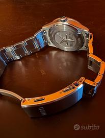 Come si può vedere anche in foto dal cartellino originale nella scatola, non l’ho praticamente mai usato, solamemte due volte per occasioni speciali, e poi rimesso nel porta orologi, sempre tenuto maniacalmente, è in perfette condizioni, nessun segno di usura, mai caduto e mai portato in acqua o al mare sulla sabbia. Vendo appunto per inutilizzo e valuto scambi anche con altri orologi, anche se preferirei vendere.