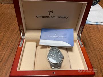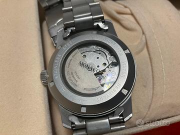 Orologio automatico completo di scatola in legno e maglie di ricambio modello Monaco Officine del tempo misura della cassa 40 mm.