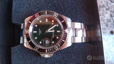 Orologio - Hermann - Automatico NUOVO NEMMENO UN GRAFFIO E SEGNI DI USURA con ghiera nera e quadrante nero cinturino colore argento in acciaio sub 30 metri datario con ingrandimento corona a vite cassa 43 mm N.b. pagamento e ritiro dell'oggetto da vicino