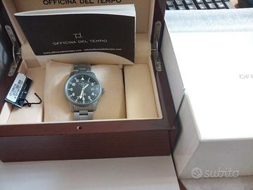 officina del tempo, in titanio automatico, movimento Miyota, diametro 40 mm esclusa corona, ottime condizioni, completo di scatola e manuale