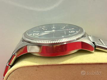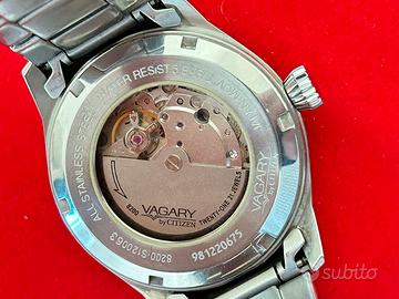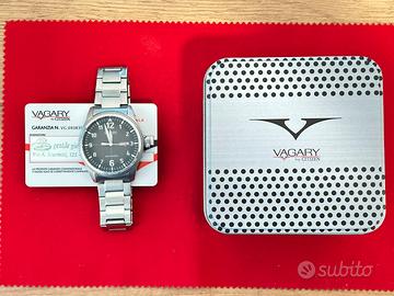 Orologio automatico Vagary by Citizen, modello Fly Boy. Cassa da 42 mm con quadrante nero ed indici a contrasto bianchi per una leggibilità eccezionale. Simpatica lancetta dei secondi con punta rossa ad aeroplano per dare un tocco di colore. Orologio da battaglia per uso quotidiano e con qualche segno di utilizzo su cassa e vetro. Orologio automatico al prezzo di un quarzo. Prezzo leggermente trattabile. Ritiro a mano su Roma o spedizione gestita tramite Inpost. Guarda il mio profilo per altri orologi.