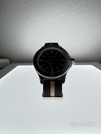 Orologio meccanico automatico originale Vostok linea Amphibia, iconico diver russo dal design classico. Quadrante nero con indici e lancette luminescenti, ghiera girevole e cinturino in tessuto.