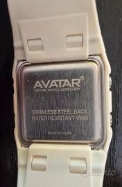 Orologio Avatar digitale con cinturino bianco e dettagli argentati.