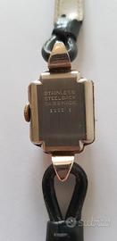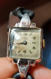 Orologio Avia anni 1920. Cassa quadrata cinturino in pelle nera. L'orologio è fermo.