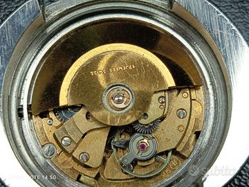 OROLOGIO AUTOMATICO ANNI 70 AVIA MATIC 17 RUBINI CASSA ACCIAIO, FONDELLO A VITE FORMA DISCO VOLANTE 42MM LARGO, 35MM ALTO... MOVIMENTO FHF 905 PULITO E LUBRIFICATO, FUNZIONANTE. QUADRANTE BLU, INDICI A BACCHETTA, LANCETTE A BACCHETTA DATARIO AL 3. CINTURINO IN PELLE SCAMOSCIATA BLU.