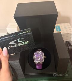 Vendo orologio chronotech active da donna nuovo con confezione e carta di acquisto con cinturino in finta pelle viola e quadrante viola e lancette a stella