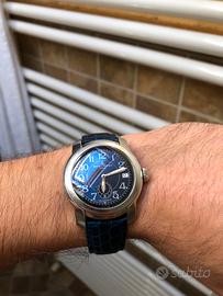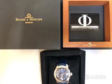 Vendo (o permuto) orologio svizzero Baume & Mercier modello Capeland con funzione conta secondi e data, bellissimo quadrante blu notte, tenuto in modo maniacale, nessun graffio sul quadrante vetro zaffiro, provvisto di scatola, controscatola e garanzia di autenticità (regolarmente acquistato presso gioielleria “Calosci” in passeggiata a Viareggio). Un grande affare.