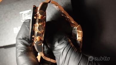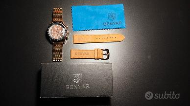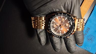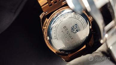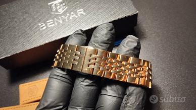 Elegante orologio Benyar con finiture color oro rosé. - Bracciale in metallo color oro rosé. - Cinturino camoscio (finto) con fibbia originale Benyar. - Quadrante color bronzo. - Dettagli color oro rosé sul quadrante. - Movimento al quarzo. - Diametro 43/44 mm.
