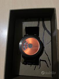 orologio nero, quadrande colorore bronzo, con scatola