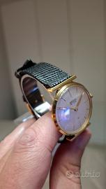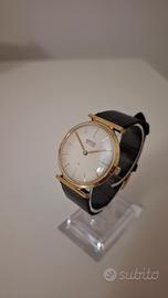 Vendo da collezione privata bellissimo orologio da uomo Berna De Luxe con movimento a carica manuale 21 rubini. Orologio con particolari anse a bacchetta che rendono l'orologio molto elegante. Placcato oro con tutte le sue parti originali da considerarsi in condizioni NOS. Orologio d'altri tempi riferibile agli anni '60 del 900, per chi vuole ispirarsi allo stile Old Money. Orologio perfettamente funzionante con leggero viraggio del quadrante appena percepibile solo con riflesso della luce. Normalissimo per un orologio di 60 anni d'età.