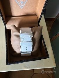 Vendo per inutilizzo orologio bianco con cinturino in pelle bianca marca guess. Utilizzato 2/3 volte. Perfettamente funzionante