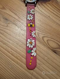 Orologio da polso con cinturino rosa e simpatici disegni.