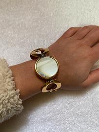 Cassa e cinturino in acciaio inossidabile dorato. Design unico a cerchi, stile Cyberpunk/Industriale.