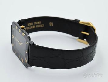Bellissimo e originale orologio al quarzo Raymond Weil Geneve bisex modello Othello placcato oro 18K. Misura senza le anse 30x27 mm. Spessore orologio 2mm. Pubblicizzato come l'orologio piu' sottile al mondo. Indossato raramente. In ottime condizioni come nuovo.