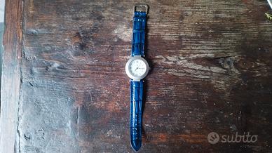 Il cinturino è in pelle blu stampata