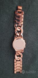 Orologio con bracciale in metallo color rame e cassa in acciaio inossidabile. Dimensioni cassa: diametro cm 3,6. Funzionante, mai usato, con batteria carica. Lunghezza totale cm 19,5. Le due pulsantiere sono solo estetiche.