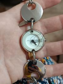 Orologio bracciale Just Cavalli in acciaio con quadrante rotondo a sfondo bianco, mai usato, perfettamente funzionante, con batteria da sostituire. Venduto nella sua scatola originale.