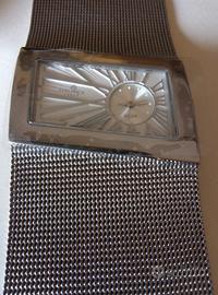 Orologio /bracciale in acciaio al quartz, marca Haurex, con scatola e garanzia, mai indossato (fondo di magazzino), con maglia larga 4 cm e quadrante rettangolare obliquo decentrato. Oggetto molto originale ed interessante. Idea regalo! Per info 340 6203846 o WhatsApp.