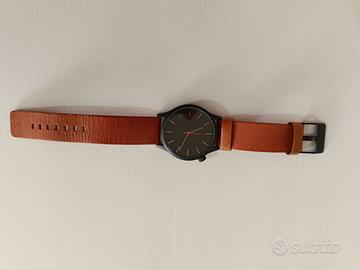 Cinturino in pelle marrone con fibbia nera, anse da 22.