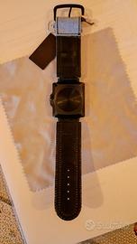 Vendo particolare orologio Breil di forma carrè al quarzo 3 sfere (ore, minuti, secondi) con movimento Harley Ronda 3673 (prodotto dal 1979 al 1985) proveniente da chiusura negozio (rimanenza di magazzino) mai indossato, normali segni dovuti dal tempo, orologio di circa 45 anni, cinturino in ecopelle e tessuto tipo jeans originale Breil con fibbia in plastica marcata Breil, funzionante, non testato, batteria inserita 1 mese fa circa per verificarne il funzionamento, fino ad allora mai inserita. Cassa in alluminio anodizzato nero, lancetta delle ore e dei minuti con decorazione a foglia, vetro plastica in ottime condizioni, quadrante bianco latte con zona celeste da ore 10 a ore 13, dimensioni cassa carrè di circa 38x38 mm, con spalline di protezione corona circa 41 mm. No scatola e no documenti, solo cartellino Breil e codice identificativo del prodotto. Orologio molto leggero. Si vende esattamente quello documentato nelle immagini e qui descritto, nessun tipo di garanzia. Visto e piaciuto.