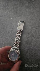 Vendo splendido orologio Breil originale, modello "Solo Tempo" dal design elegante e contemporaneo. L'orologio è nuovo, mai indossato, come dimostrano le pellicole protettive ancora presenti sul cinturino. Il quadrante è il vero punto di forza: realizzato in vera madreperla, offre riflessi cangianti unici sotto la luce naturale. La cassa presenta un design architettonico con viti a vista sulla lunetta, un tocco iconico dello stile Breil che unisce femminilità e carattere. PERCHÉ ACQUISTARLO: Perfetto come idea regalo grazie allo stato di conservazione impeccabile. La combinazione tra l'acciaio lucido e la delicatezza del quadrante in madreperla lo rende adatto sia ad outfit eleganti che per un uso quotidiano sofisticato.