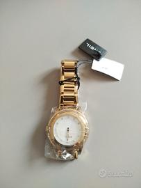 OROLOGIO SOLO TEMPO DONNA BREIL TW1088 Movimento al Quarzo; Cassa Acciaio PVD Oro (38 mm); Quadrante Madreperla; Indici Swarovski; Cinturino Acciaio PVD Oro; Resistente all'Acqua (10 ATM) 120€ trattabili