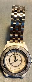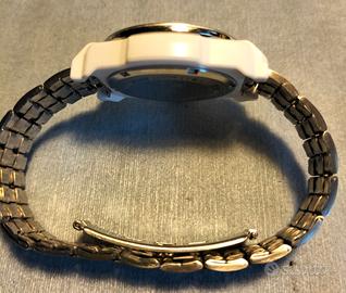 Simpatico orologio Breil donna - unisex con cassa in policarbonato tipo ceramica ed acciaio, Vintage anno 2000-2005, movimento al quarzo, dichiarato water resistant 10 Atm . Sconsiglio di portarlo in acqua, batteria e guarnizione nuovi. Portato ed usato e customizzato con cinturino in acciaio al posto di quello in policarbonato, graffi presenti sulla lunetta poco visibili come da foto, perfettamente funzionante. Cedo per ridimensionamento collezione visto e piaciuto. Preferisco scambio a mano, spedisco anche