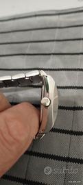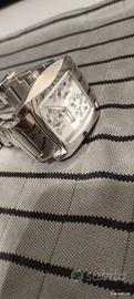 L'orologio della linea Breil Tribe, specificamente parte della collezione Flight. Questo orologio da donna si distingue per la cassa rettangolare in acciaio e il quadrante decorato con un motivo a cerchi degradanti nei toni del grigio e del bianco, arricchito da piccoli cristalli. Movimento: Al quarzo (batteria) Materiale: Acciaio inossidabile per cassa e cinturino batteria nuova. perfettamente funzionante