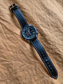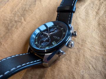 Orologio al quarzo, cronografo, diametro 42 mm, con datario a ore 4, cinturino in pelle, full set.
