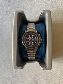 Orologio Breil unisex nuovo ,modello FS20/FS21con cronografo blu e quadrante interno blu ,dotato di tachimetro e telemetro .Confezione originale .Lunghezza maglie 28 centimetri senza chiusura,20 cm a maglie chiuse .