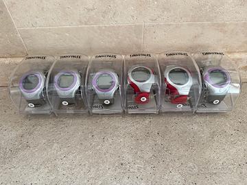 Orologio con custodia trasparente, con cronometro, illuminato e con sveglia, colori vari, la pila va inserita nuova e non è compresa con la vendita