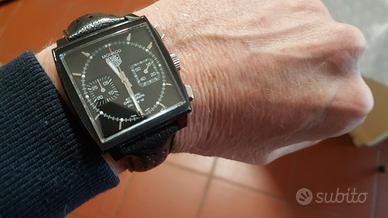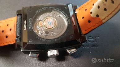 tag heuer monaco serie speciale automobil club montecarlo cassa in acciaio quadrata da 38mm rivestita in pvd nero con scatola e libretti istruzioni manca la garanzia( possibile copia fattura di acqusto) il vetro ha una piccola cricca alle cinque