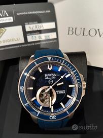 * * * NUOVO ED IMBALLATO * * * BULOVA MARINE STAR BLU - (BELLISSIMO, PURTROPPO LE FOTO NON RENDONO BENE LA TRASPARENZA DEL COLORE) - AUTOMATICO - CASSA IN ACCIAIO - VETRO ZAFFIRO - 21 JEWELS - MOVIMENTO A VISTA - CINTURINO IN GOMMA - 43 mm FULL SET (GARANZIA UFFICIALE 24 MESI APRILE 2026, VEDI FOTO) PREZZO NEGOZIO: € 359,00 PREZZO PROPOSTO: € 249,00 SU ROMA POSSIBILITÀ DI RITIRO A MANO PAGAMENTI ACCETTATI: BONIFICO ISTANTANEO E PAYPAL