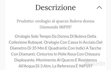 Vendo questo orologio da donna, marca Bulova in ottime condizioni a 150€ trattabili ( nuovo costa 300€ )