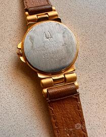 orologio Bulova Longchamp Vintage Lady. Ottime condizioni estetiche e perfettamente funzionante. Cassa dorata e indici dorati. Quadrante color sabbia molto elegante. Cinturino in pelle marrone originale marchiato Bulova.