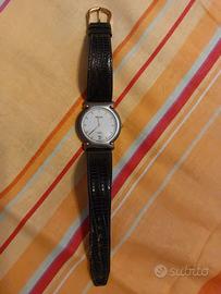 Orologio da donna, inizi anni 90, al quarzo, con cassa in acciaio satinato e con 4 griffe in oro 18 k ,diametro di 33 mm. mai usato, indossato una volta per testarlo e poi riposto nella sua scatola originale, in perfetto stato estetico ma ATTENZIONE pur essendo "nuovo" ma nel senso mai usato ha in realtà qualche problema nel funzionamento nel tempo, nello specifico funziona a tratti e poi si ferma, forse a causa dell'età e i 30 anni di fermo della meccanica, la batteria è nuova e per scrupolo è stata controllata, quindi non so dove sia il problema. Per questo motivo le vendo come difettoso al prezzo da concordare.