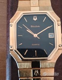 Orologio Bulova al quarzo, sfondo nero, cinturino in acciaio colore oro, pari al nuovo, da cambiare la batteria, Euro 50 Tel. 331/7162881