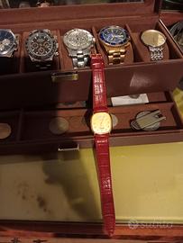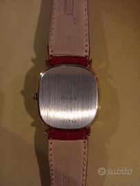 Salve propongo orologio Bulova vintage epoca. È un Bulova anni 70 in perfette condizioni, cassa in bevuto in bagno l'oro, cinturino ancora in perfette condizioni ma non originale. Perfettamente funzionante e appena revisionato una settimana fa con pulizia completa e sostituzione batteria. . Bello e molto particolare. Ideale sia per Donna che uomo.. possibilità di aver una scatola per contenerlo, ma non è la sua.