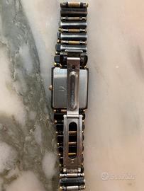 Orologio donna, Bulova Quartz, anni 80/90, con cassa e bracciale in metallo nero con inserti dorati…Usato, funzionante, chiusura cinturino da rivedere.