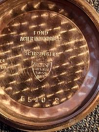 stupendo e raro tissot- omega del 1948' in perfette condizioni, diametro cassa mm35, escluso corona. versione in acciaio placcato oro con 40 mikron! movimento automatico "bumper" movimento omega in quanto nel 48' tissot era in associazione con omega.