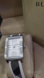 Orologio Burberry donna cassa rettangolare in acciaio satinato, Swisse made, datario al 6. Impermeabile 30m. Con confezione