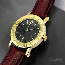 orologio da polso Bvlgari Lady in oro giallo 750 anni 80 movimento al quarzo quadrante nero cassa 26 mm cinturino in pelle chiusura ardiglione con fibbia originale in oro giallo possibilità di finanziamento spedizione tracciata e assicurata