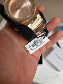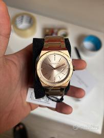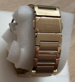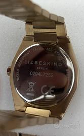 Orologio Liebeskind Berlin Rose Gold Donna. Cassa in acciaio inox IP (Frozen) oro rosa parzialmente opaco, Ø 36 mm. Display analogico vetro minerale antigraffio, impermeabilità testata fino a 5 bar/ATM. Cinturino in acciaio inossidabile di alta qualità, parzialmente opaco, IP (Frozen), oro rosa con fibbia deplo a snap. Movimento al quarzo. Alimentazione a batteria. Peso 108 gr. Dimensioni: Diametro cassa 36 mm Larghezza cinturino 18 mm Spessore cassa 9 mm Lunghezza di banda 20 cm (complessivi delle 6 maglie a parte). Orologio mai usato, nuovo, condizioni perfette con etichetta, confezione e accessori packaging originali. Acquistato a dicembre 2025 con si vede dall’etichetta al prezzo di euro 249,90.